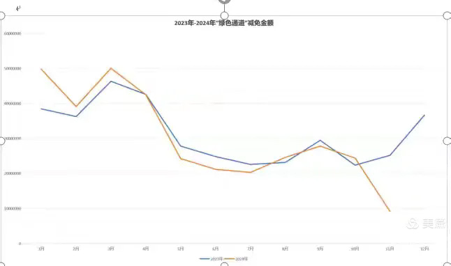 2023 年綠通數(shù)量共 132222 輛,免費(fèi)金額 375834942.22 元。2024年截至 11 月 20 日,綠通數(shù)量共 125346 輛,免費(fèi)金額 333207518.57元。數(shù)據(jù)按月度展開(kāi)如圖:
